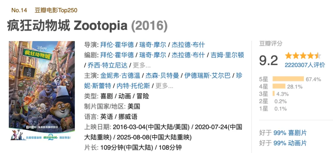 像是时隔九年回归的现象级动画《疯狂动物城2》。