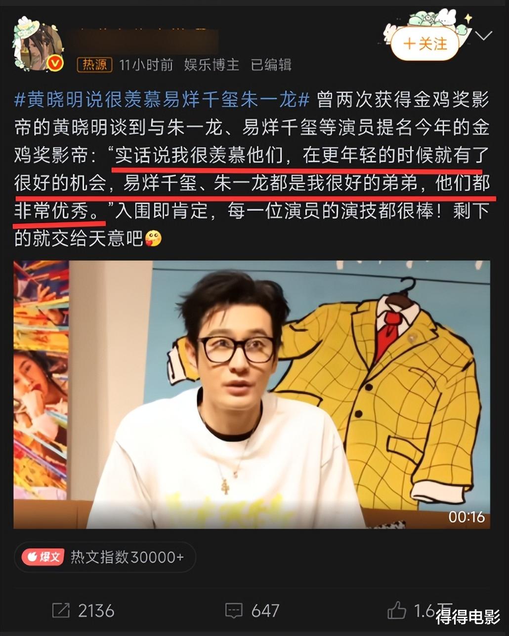 其他同期人光是影帝都拿了一箩筐了,可黄晓明仍然还在卖弄自己的颜值,卖弄自己的形象。