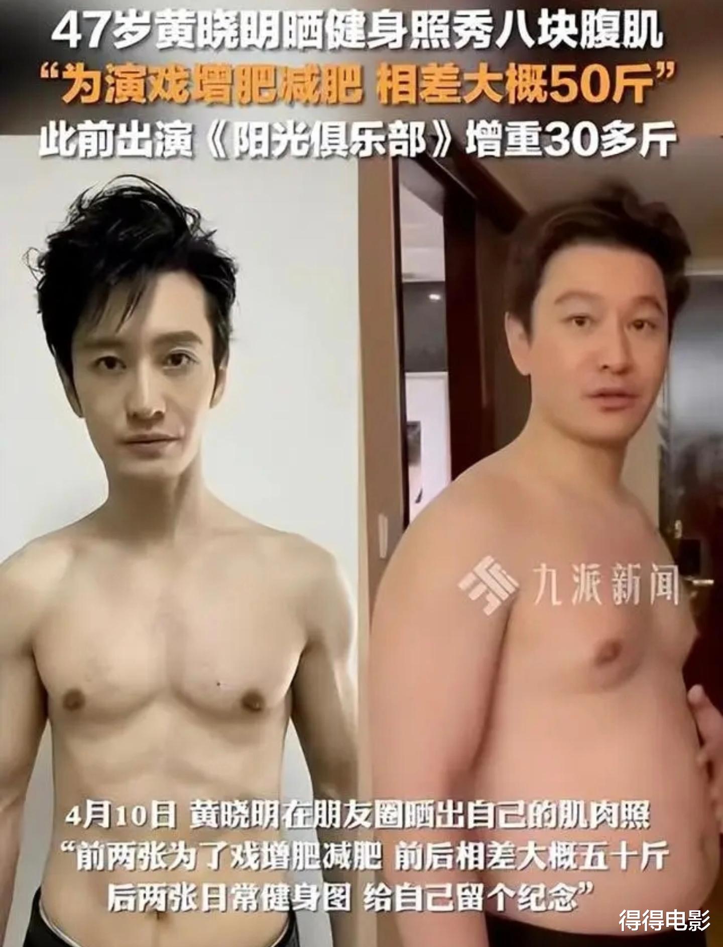 要说不努力也不是,《戴假发的人》黄晓明为了塑造角色减重30斤,到了《阳光俱乐部》,黄晓明又为了角色增重30斤。