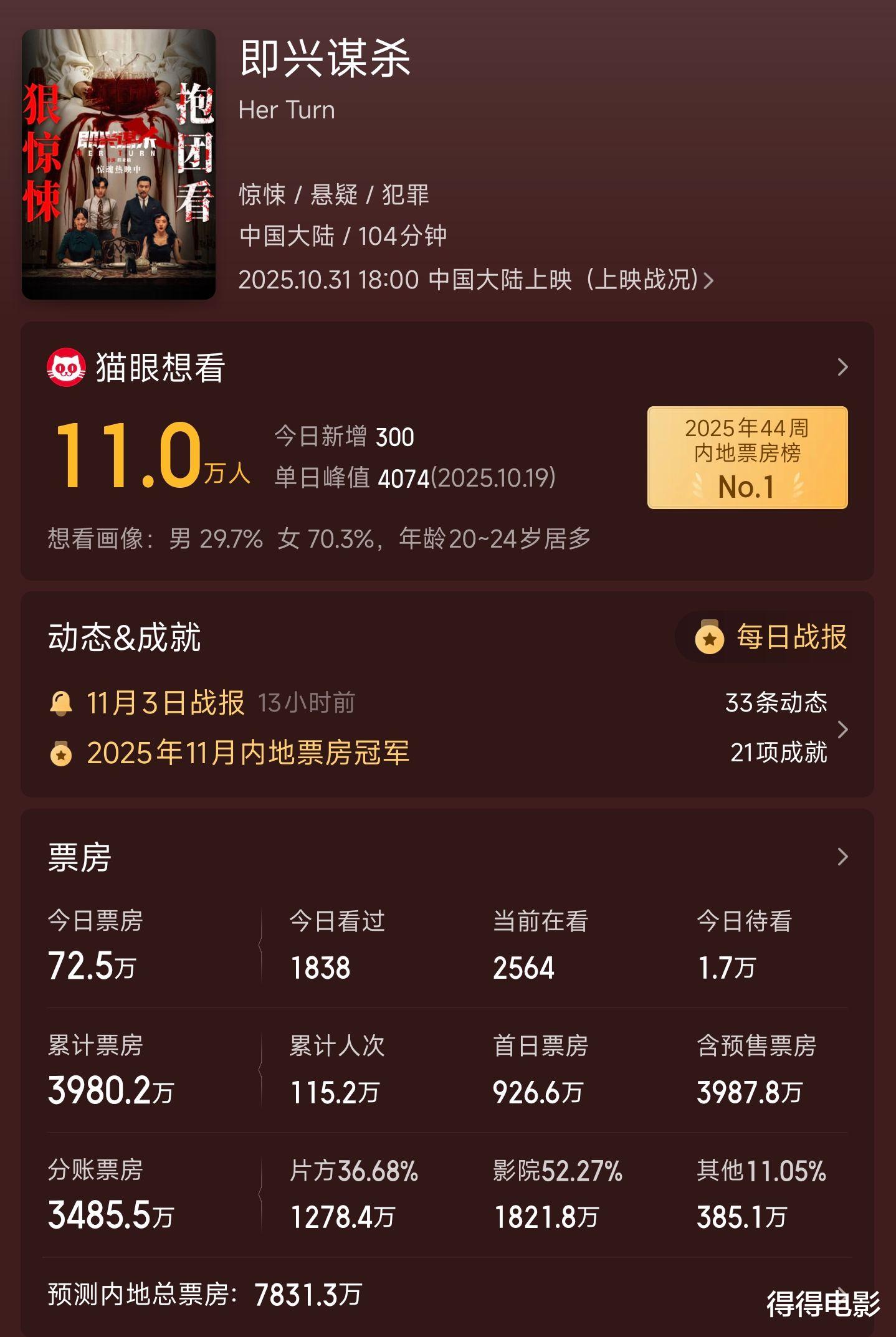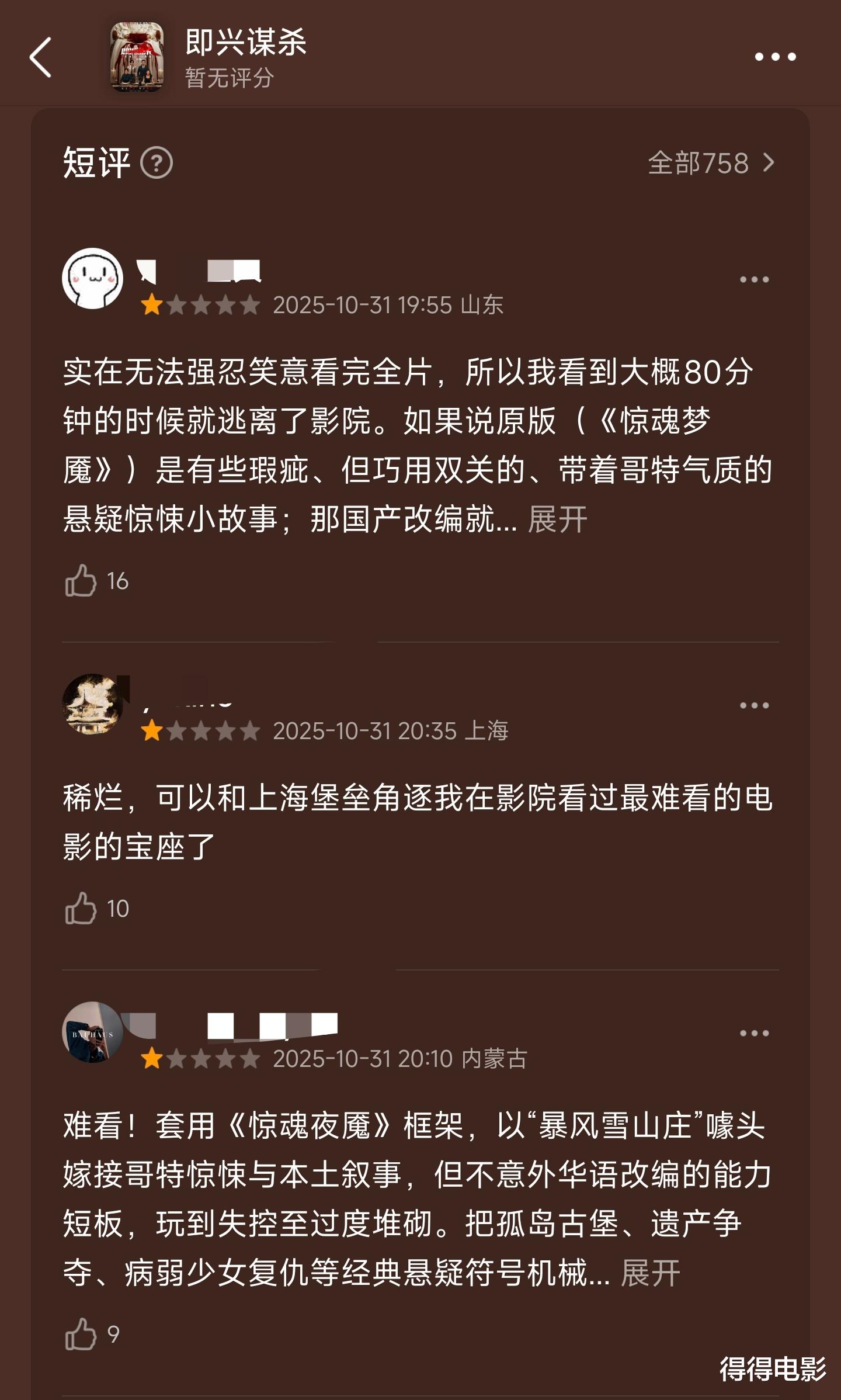 2023年的《最后的真相》,2024年的《戴假发的人》,到今年的《阳光俱乐部》和这部肯定不能过亿,口碑全网群嘲的《即兴谋杀》。