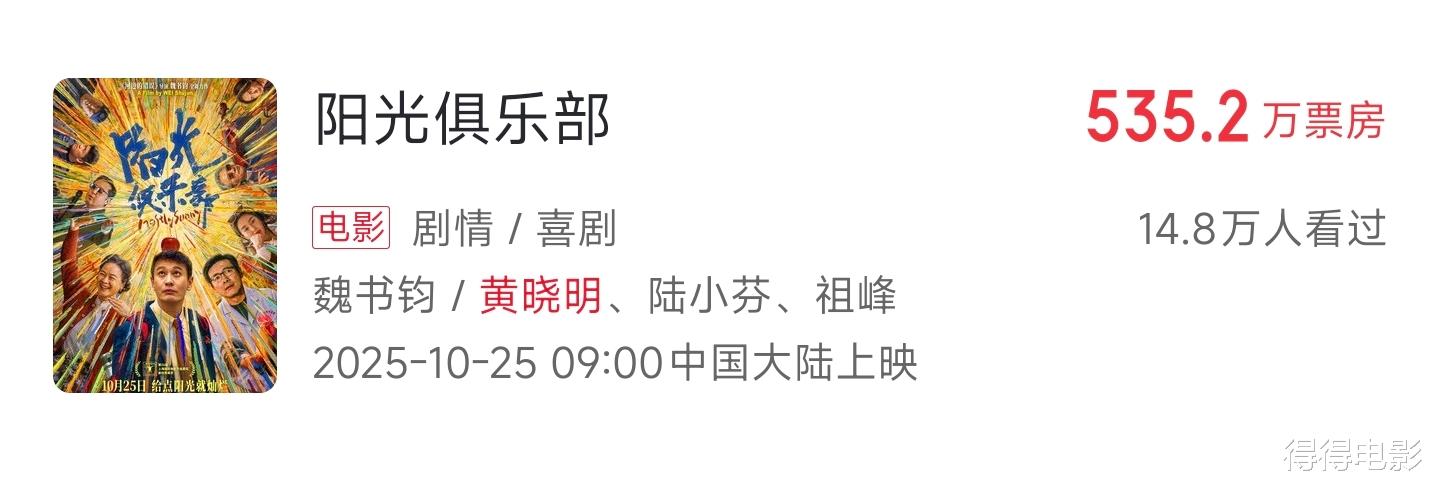 事实上,就在《即兴谋杀》被全网群嘲的同时,黄晓明的另一部电影《阳光俱乐部》也遭遇史诗级血扑街。