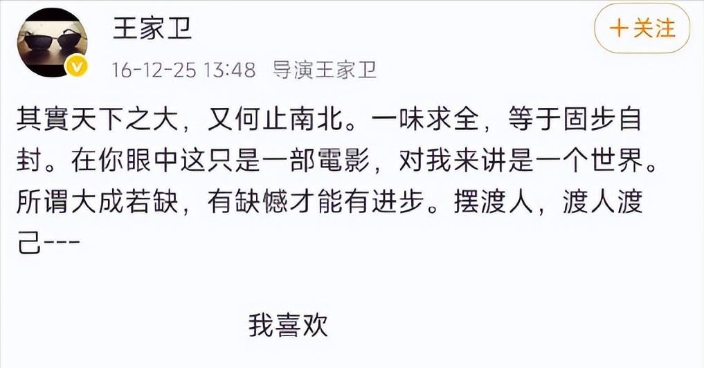 2016年王家卫监制的《摆渡人》口碑扑街,半个娱乐圈跟风转发“我喜欢”的统一话术。