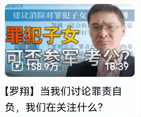 2年前,关于消除对犯罪子女考公限制的提案,罗翔老师因为发布视频参与讨论,又引来众多网友的不满。