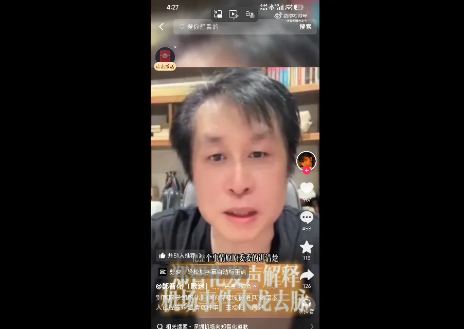 最终,郑智化在抖音发布一条长达24分钟的视频,详细讲述了事情的经过和自己的真实想法。