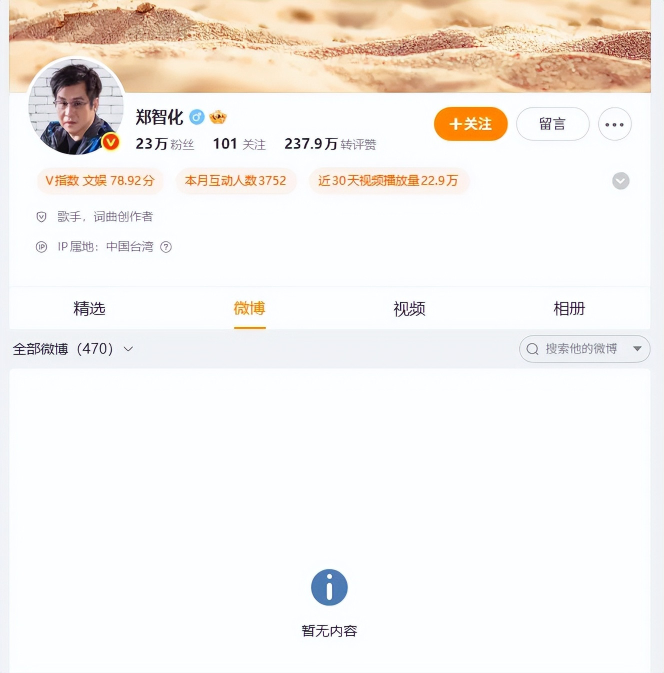 于是,11月3日那一天,人们发现郑智化的微博主页显示,所有内容已不可见。