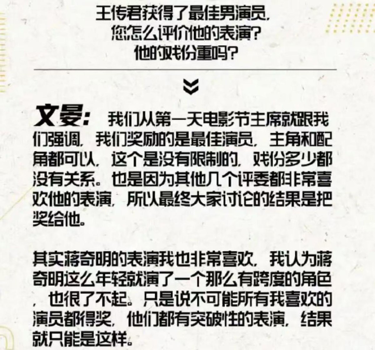 所以,文晏才会力推王传君,最终把他推上了影帝的宝座,是以这个锅就稳稳当当地落在了文晏的身上。
