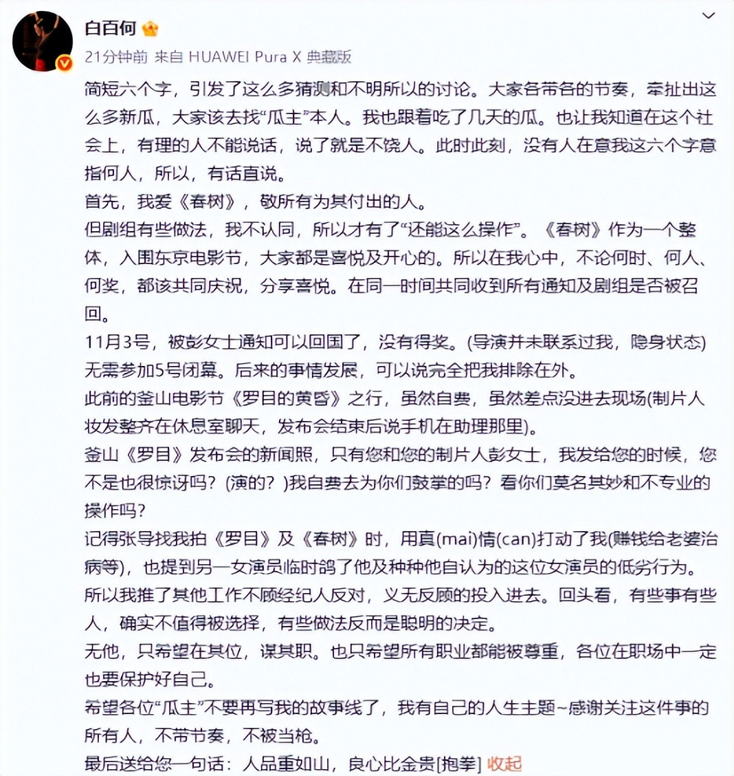 是以一开始白百何在11月3日发文的时候,很多人还没有反应过来。